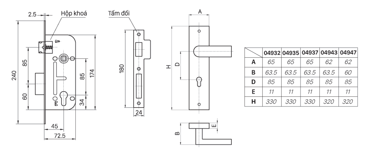- Khóa cửa đi hợp kim 04947