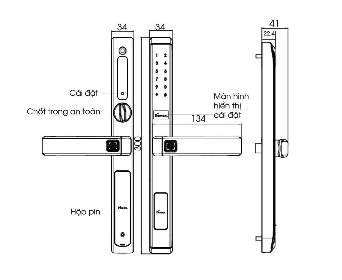 - Kích thước khóa: 34xH300 mm